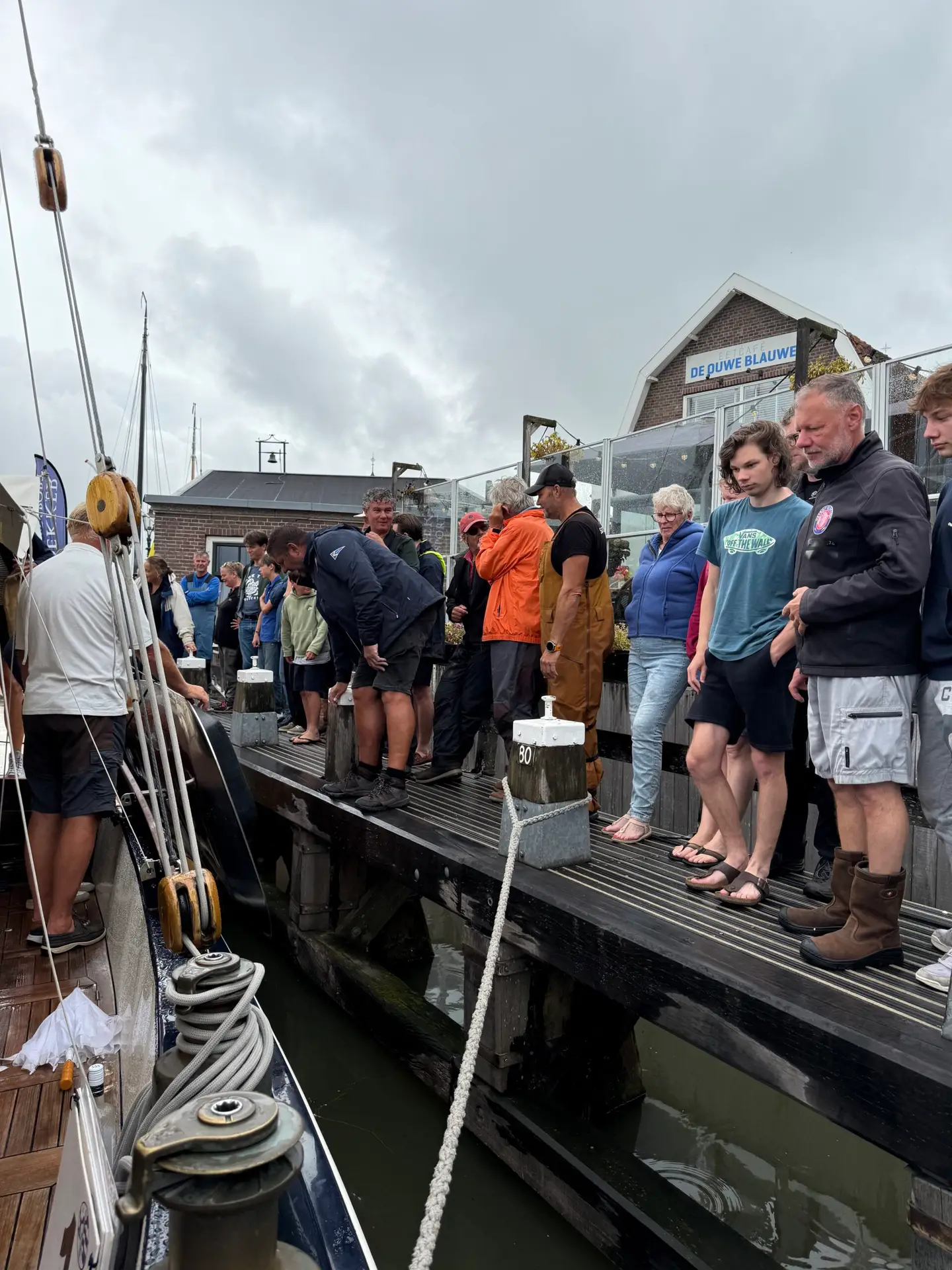 In het Jan Haringweekend is er op zaterdag de jaarlijkse korendag en op zondag de traditionele palingrook wedstrijd met meer dan 100 deelnemers uit het hele land. Zondag dus volop vers gerookte makreel en paling en veel publiek in de haven als we na de finish binnenvaren.